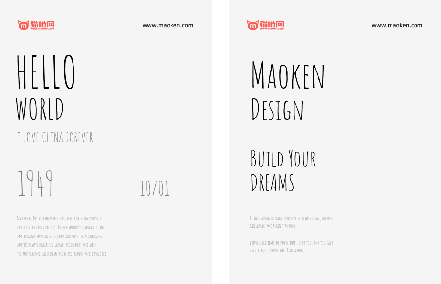 - 这款字体无论是个人还是企业都可以自由商用,无需付费,也无需知会或者标明原作者。